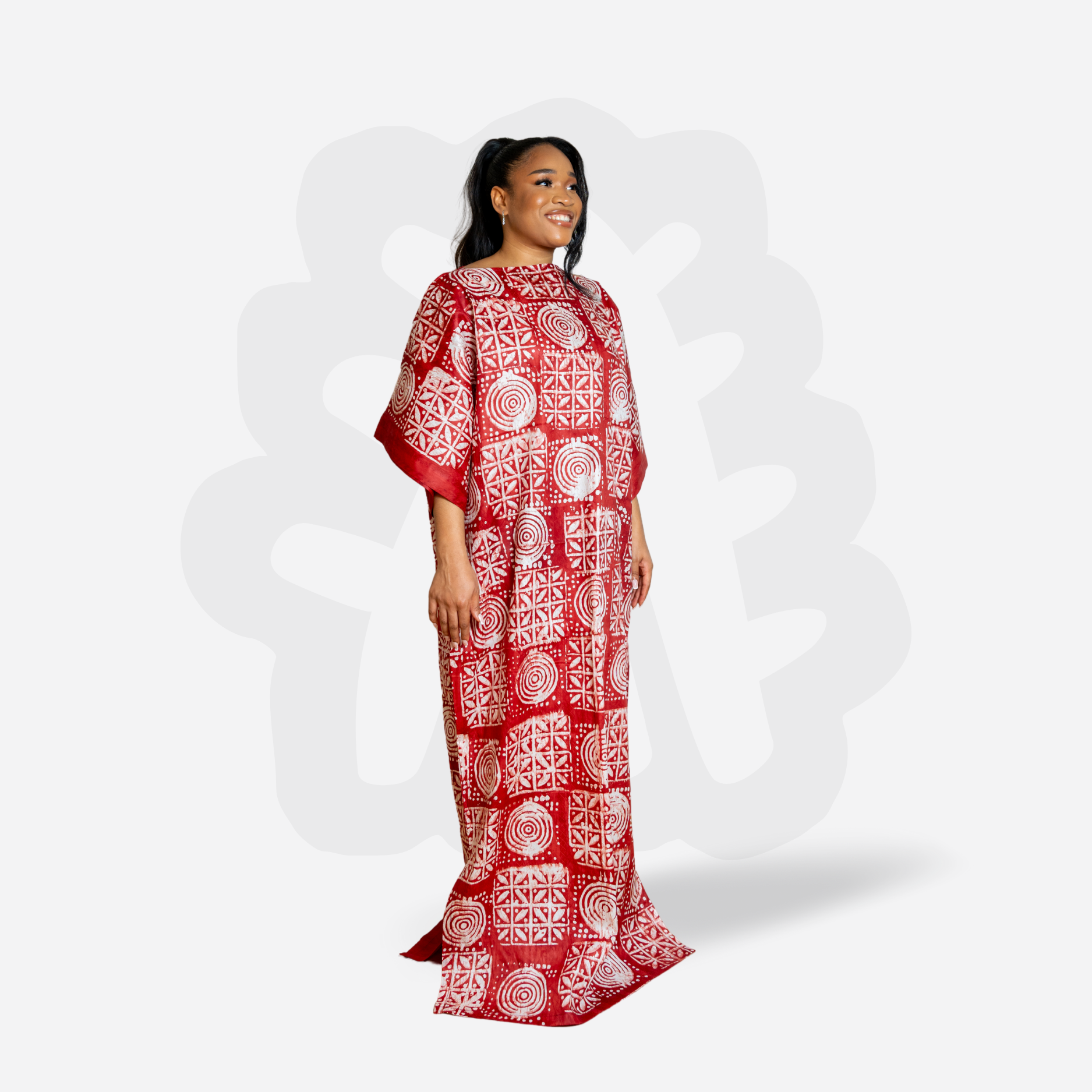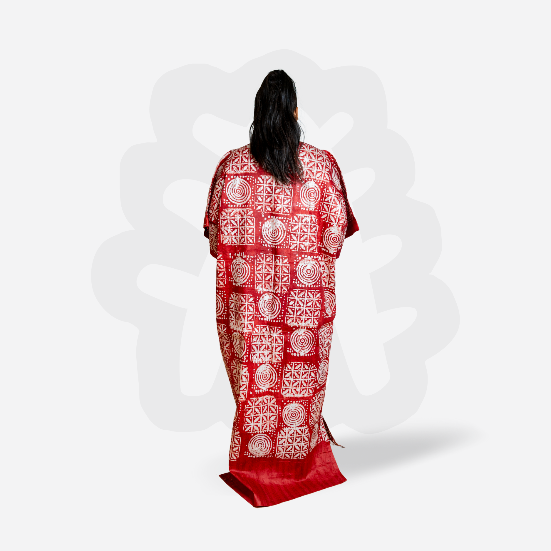 Adire Bubu with White Symbolic Motifs – Handmade Kaftan Dress