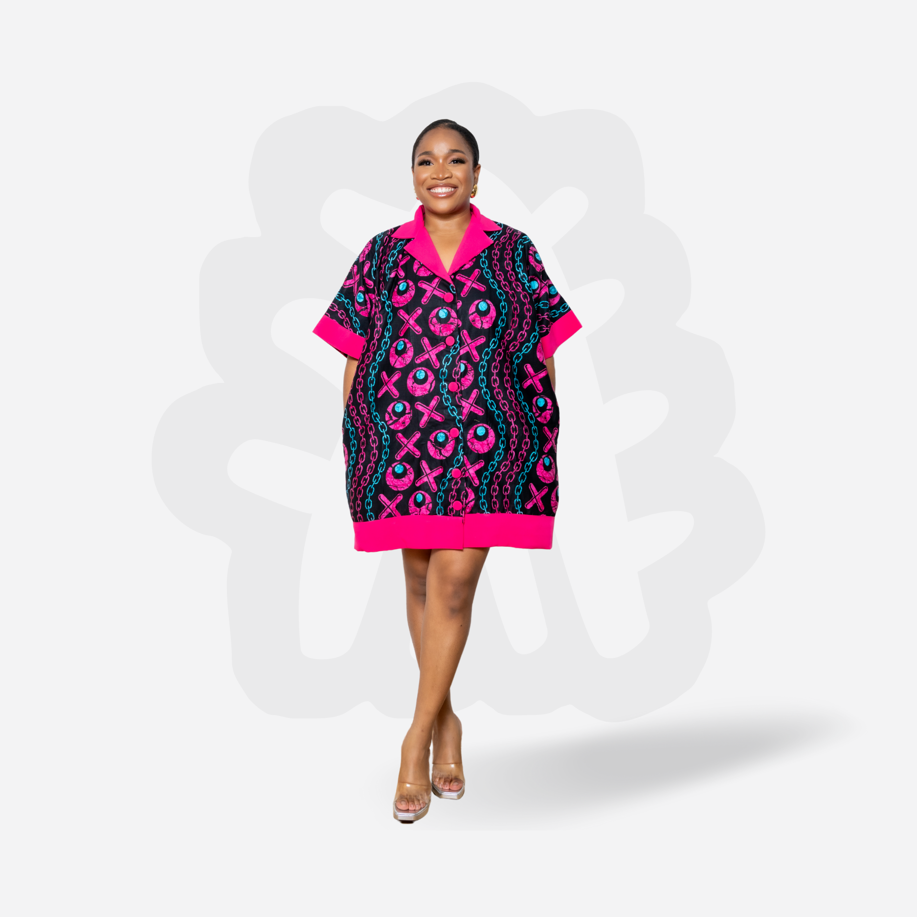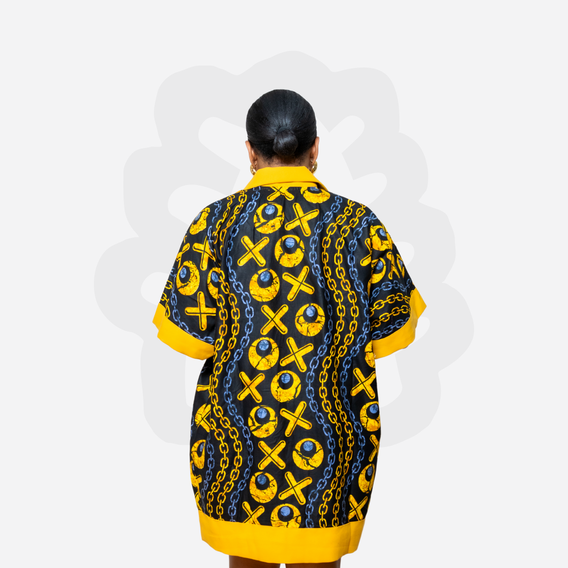 Turn heads with this vibrant Shorty Bubu in beautiful and bold X and O detailing. Designed to be both expressive and playful, this piece seamlessly blends a contemporary edge with the deep-rooted Ankara tradition.