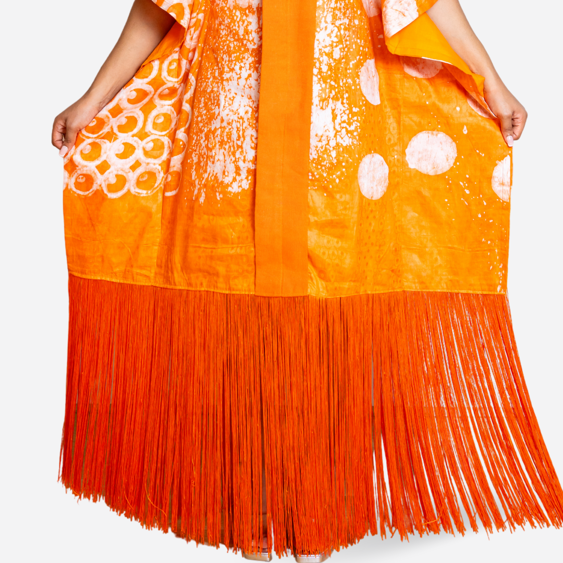 A bold blend of tradition and effortless elegance, this Fringe Bubu is crafted from 100% Adire hand-dyed cotton, celebrating rich heritage through every unique pattern. Designed for both comfort and statement, it features flowing fringes that add a touch of movement and drama to your silhouette.